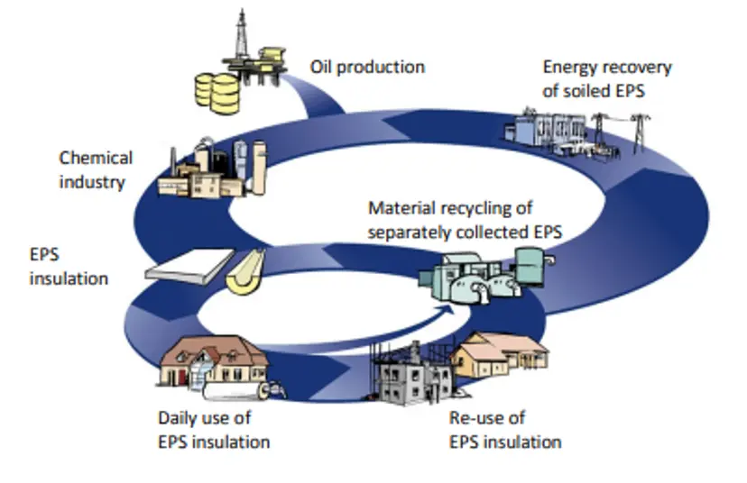 Creating EPS insulation products for construction is an efficient use of this natural resource. Every 1kg of oil used to make EPS insulation will save the environment from burning 150kg of oil for heating the building over its service life of 50 years.